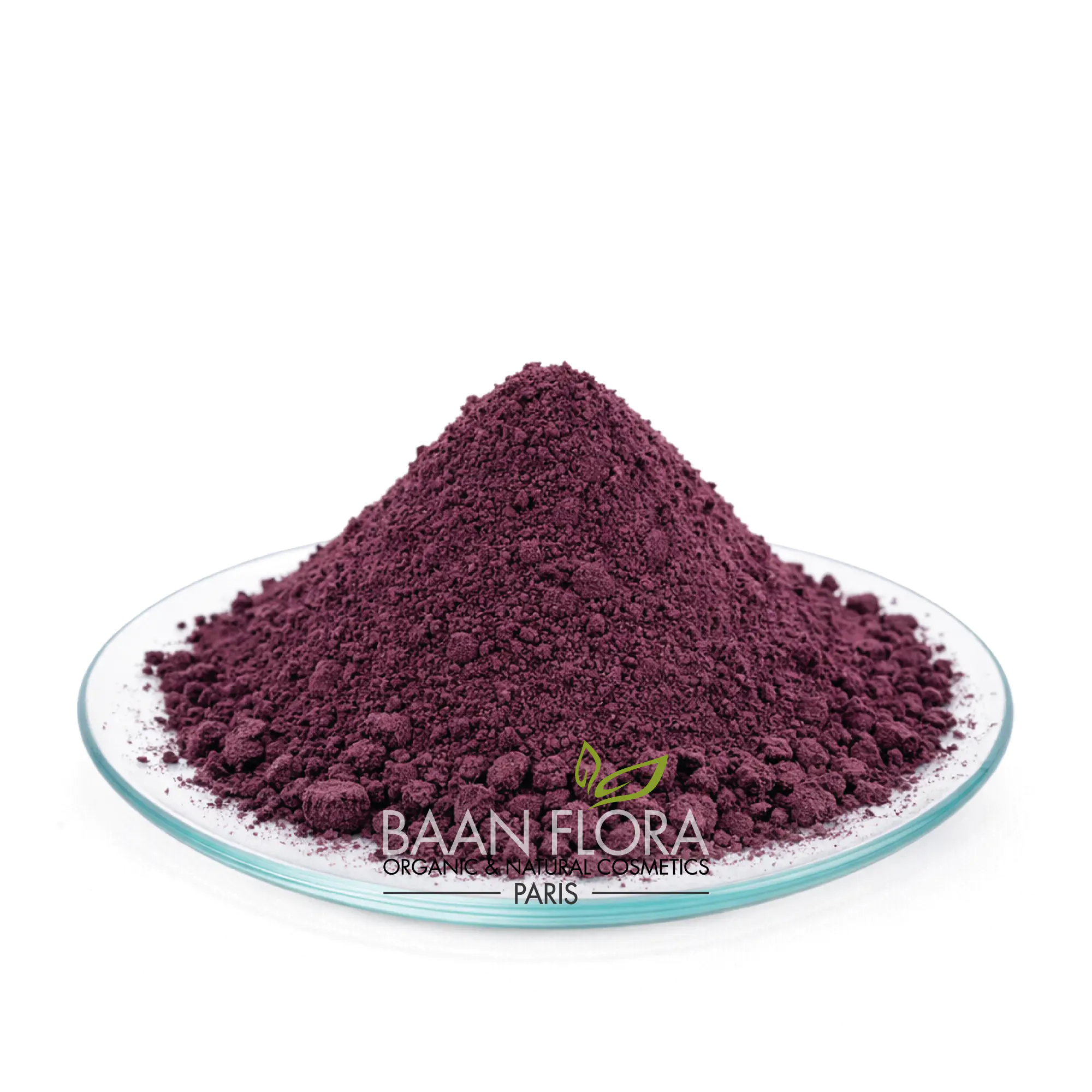 Son principal usage est de teinter naturellement les huiles, les baumes à lèvres, les savons, les soins capillaires et les préparations cosmétiques maison. Mélangée aux huiles végétales, elle donne de magnifiques nuances bleutées, violettes ou bordeaux selon le pH du produit.